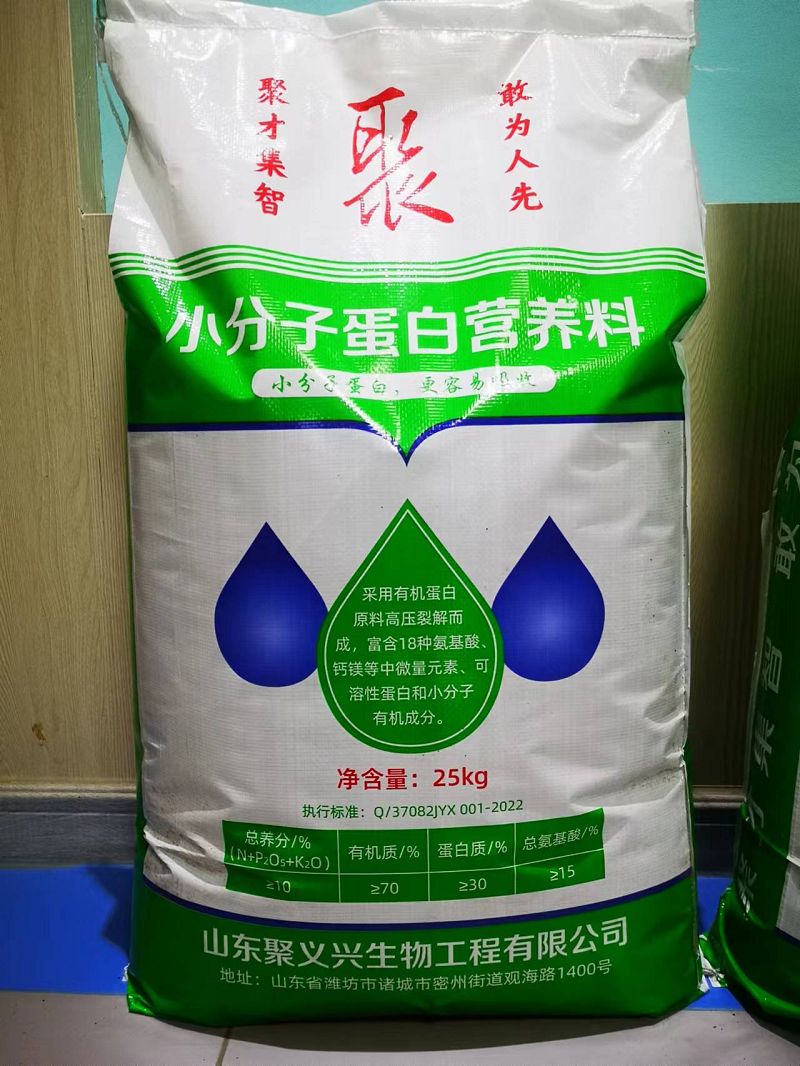 公司技術(shù)團隊于 2022年3月5日成功開發(fā)出第一款肥水專用產(chǎn)品—小分子蛋白營養(yǎng)料(已申請企業(yè)標(biāo)準(zhǔn)Q370782JYX 001-2022),本產(chǎn)品采用鮮雞糞為原料,根據(jù)不同的養(yǎng)殖種類和水體環(huán)境,利用獨有的專利技術(shù)精制而成,具有營養(yǎng)全面、易吸收、肥水快、不臭水等優(yōu)勢,深受水產(chǎn)養(yǎng)殖客戶喜愛。